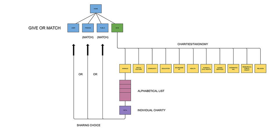 User testing results will ultimately prove the viability of my design, but I can't help but get excited when I think about the potential impact this may have upon application based charitable giving. Given that peer influence plays such an important role in motivating Millennials to action, it is my hope that this feature might generate just such an impulse. In opposition to the traditional, hierarchical search and browse design where one might 'lose the moment', the match giving feature allows users to quickly match and share in the experience of giving in just a few simple clicks. Fingers crossed!